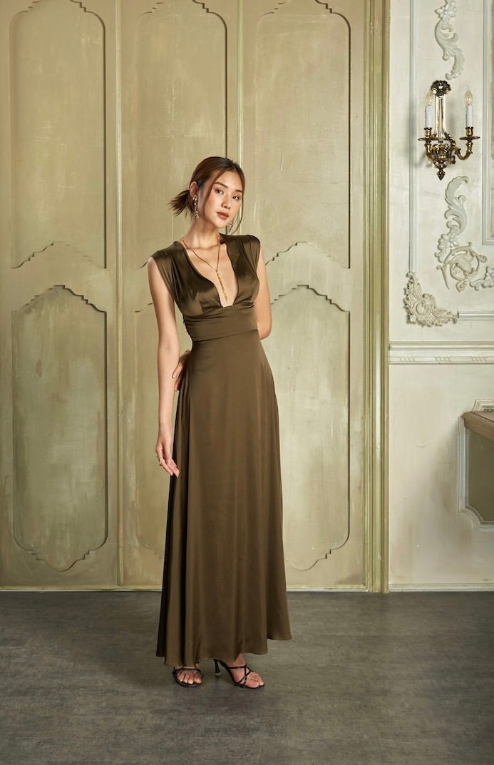 13+ Satin Olive Green Dress